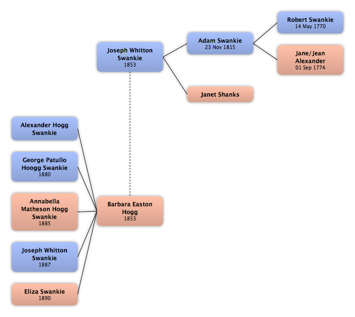Barbara Easton Hogg | 1853 | Alexander Hogg Swankie George Patullo Hoogg Swankie Annabella Matheson Hogg Swankie Joseph Whitton Swankie Eliza Swankie |