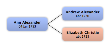 Andrew Alexander | abt 1720 | Elizabeth Christie | abt 1725 |