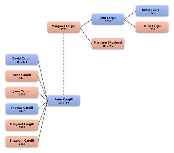 Peter Cargill | abt 1789 | David Cargill Anne Cargill Jean Cargill Thomas Cargill Margaret Cargill Elizabeth Cargill |