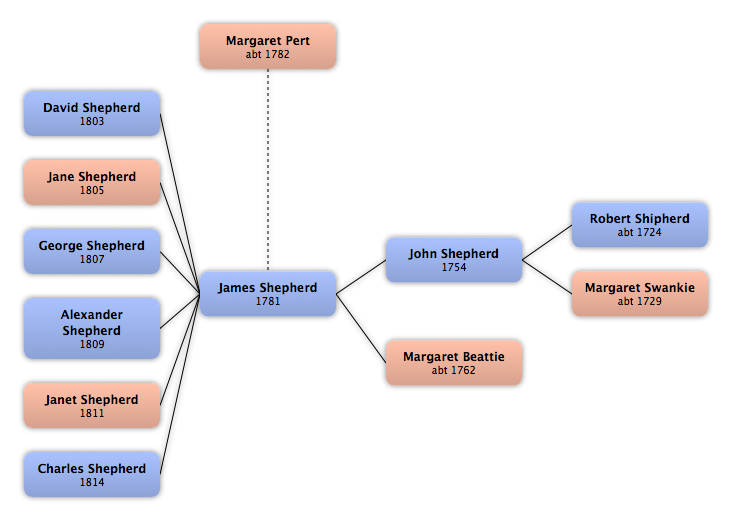 James Shepherd | 1781 | David Shepherd Jane Shepherd George Shepherd Alexander Shepherd Janet Shepherd Charles Shepherd |