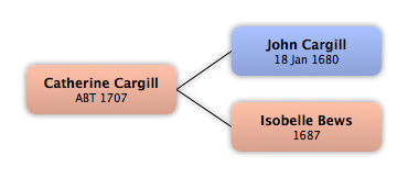 John Cargill | 18 Jan 1680 | Isobelle Bews | 1687 |