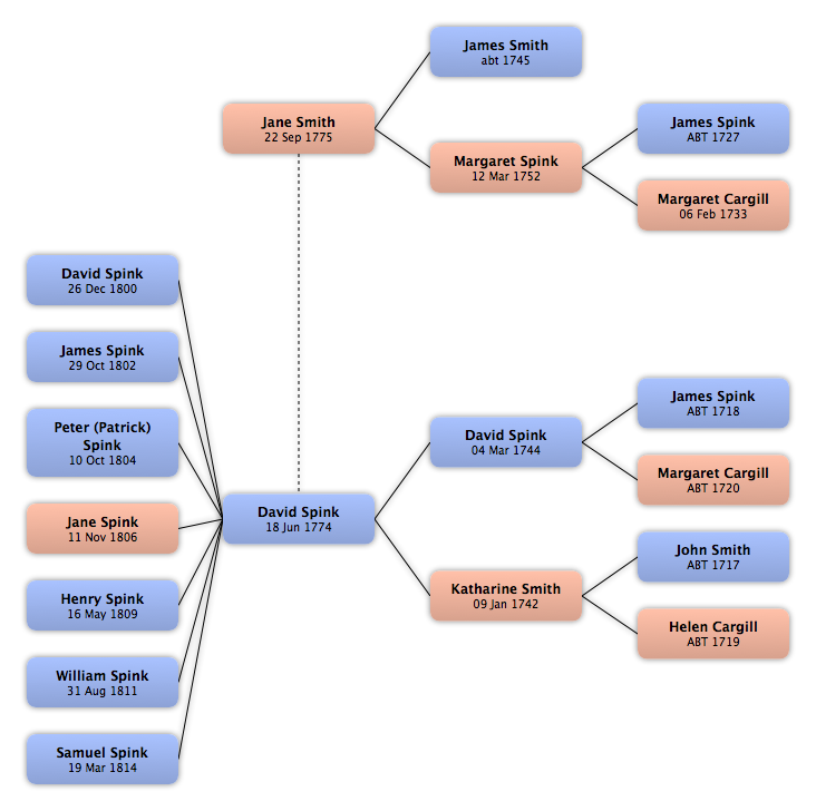 David Spink | 18 Jun 1774 | David Spink James Spink Peter (Patrick) Spink Jane Spink Henry Spink William Spink Samuel Spink |